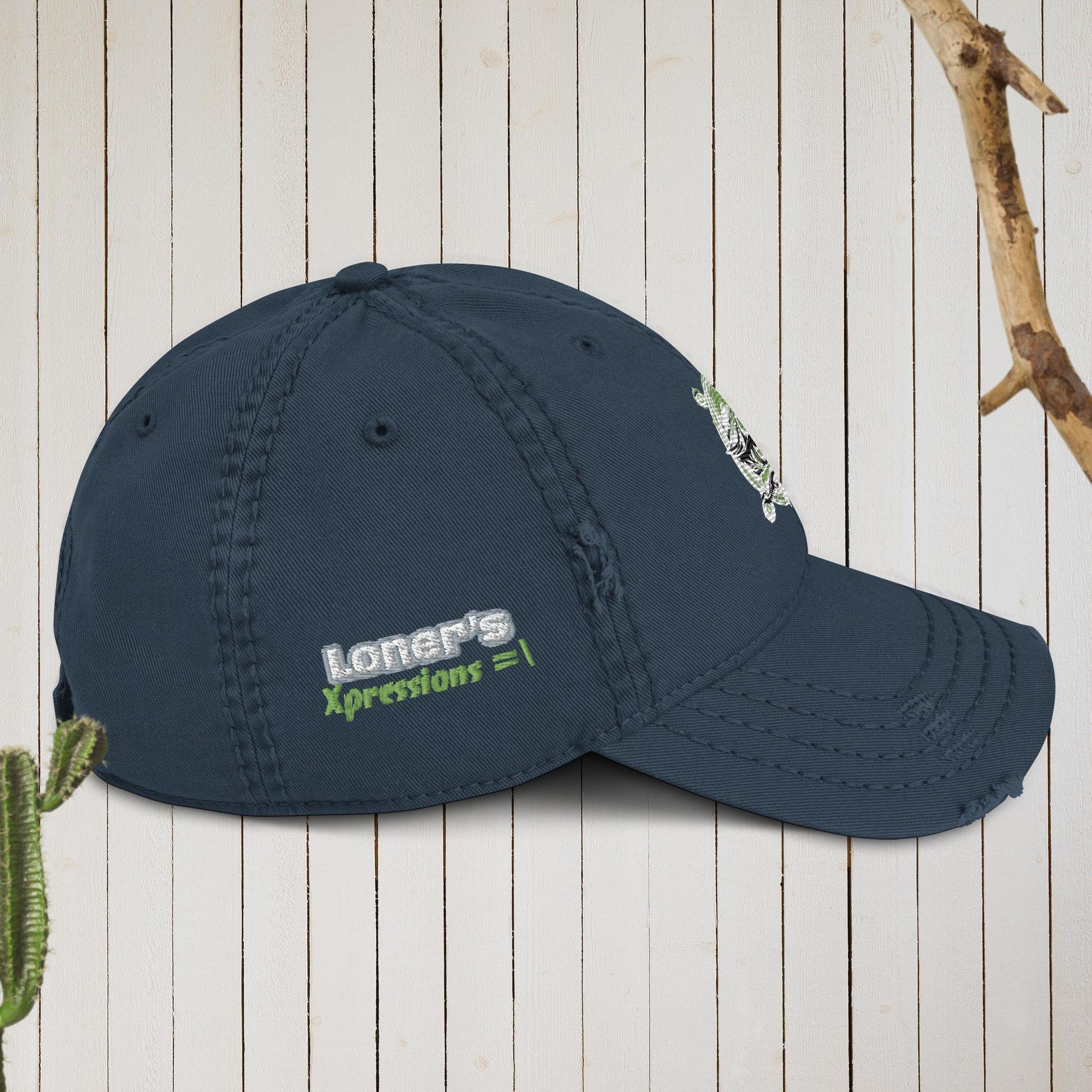 Expand your headwear collection with this fashionable dad hat. With a slightly distressed brim and crown fabric, it’ll add just the right amount of edge to your look. For a quick and easy outfit pair it with slacks, your favorite jeans, and a sports tee.
